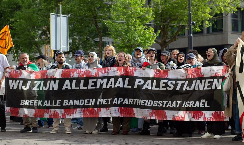 Hollanda’nın Rotterdam kentinde, İsrail’den yola çıkan ve F-35 savaş uçağı parçalarını taşıyan bir geminin Rotterdam Limanı’na yanaşması protesto edildi. Gösteri, Rotterdam Belediye Binası önünde yapıldı ve çoğunluğunu Hollandalıların oluşturduğu çok sayıda kişi katıldı.