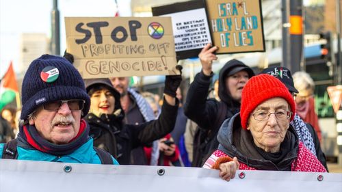 Rotterdam'da yüzlerce kişi, Filistin'e destek için toplandı ve İsrail'in saldırılarını protesto etti.