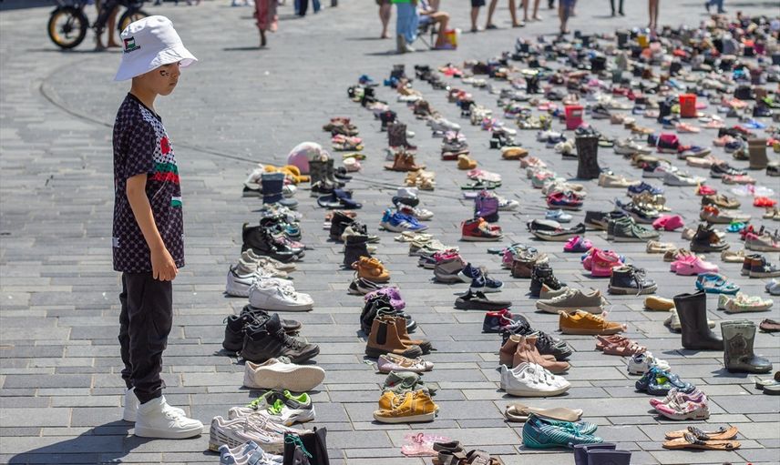 Etkinlikte, Gazze'deki saldırılarda hayatını kaybeden binlerce çocuğun anısına binlerce çocuk ayakkabısı meydanda sergilendi. Etkinlikte, ölen çocukların adları ve yaşları tek tek okundu. Gönüllüler ise, meydana gelenlere Gazze'de yaşananları aktaran broşürler dağıtarak bilgilendirme yaptı.