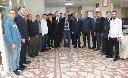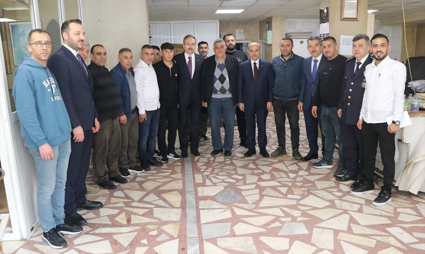 İçişleri Bakan Yardımcısı Mehmet Aktaş, Siirt'te ziyaretlerde bulundu. Aktaş (sağ 5), Pençe Kartal-2 Harekat bölgesinde yer alan Gara'da terör örgütü PKK tarafından şehit edilen Jandarma Er Süleyman Sungur'un babası Salih Sungur'u iş yerinde ziyaret etti.