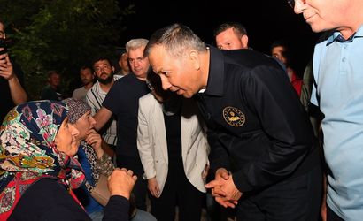 İçişleri Bakanı Ali Yerlikaya, 6,1 büyüklüğünde depremin meydana geldiği Balıkesir'in Sındırgı ilçesinde, vatandaşlarla sohbet etti.