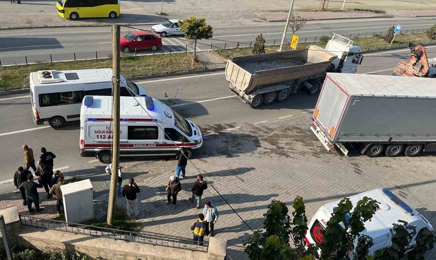 Edinilen bilgilere göre, Çevre ve Şehircilik Müdürlüğü önünde ilerleyen bir tır yolcu indirmek için ana yolda durdu. Arkasındaki kum kamyonu da durunca, arkadan gelen servis minibüsü ani fren yapan kamyona çarptı.