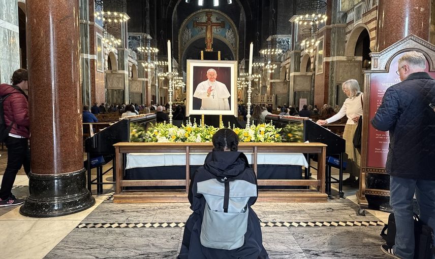 Katoliklerin ruhani lideri ve Vatikan Devlet Başkanı Papa Franciscus'un ölümü üzerine halk kiliselerdeki taziye alanlarına akın etti. Papa Franciscus'un ölümü üzerine ülkedeki Katolik kiliselerinde anı ve taziye alanları oluşturuldu. Londra'da yaşayan Hristiyanlar, Katolik Kilisesi'nin İngiltere ve Galler'deki merkezi Westminster Katedrali başta olmak üzere kiliselerdeki taziye alanlarında Papa için dua ederek mumlar yaktı. Oluşturulan anı ve taziye köşelerine Papa'nın fotoğrafı yerleştirildi, öğle saatlerinde Katolik kiliselerinde yapılan ayinlerde Papa Franciscus için dua edildi. Westminster Katedrali dışında asılı Vatikan bayrağı yarıya indirildi.