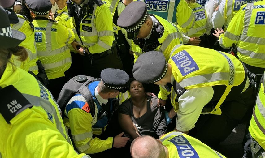 Londra Metropolitan Polisi, eylem sırasında sıkı önlemler aldı. Polis, bazı protestocuları gözaltına almak istemesinin ardından güvenlik güçleri ile eylemciler arasında arbede yaşandı. Arbede sırasında eylemciler, gözaltına alınmak istenen iki kişiyi polisin elinden kurtarıldı. Londra polisi, toplamda 3 kişinin gözaltına alındığını açıkladı.