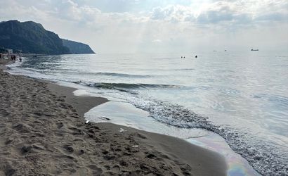 Bartın'ın İnkumu tatil beldesinde denizde meydana gelen kirlilik ve petrol ürünü kokusu nedeniyle denize girmek