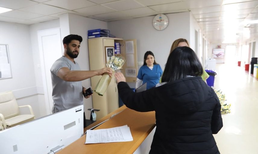 Bayındır Belediyesi, hazırlanan nergisleri Bayındır Devlet Hastanesi'nde dağıttı