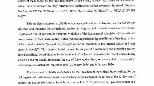 İran'dan BM'ye sert mektup: Trump'ın söylemleri kışkırtma olarak niteleniyorİran'ın BM Daimi Temsilcisi Emir Said İravani, BM Güvenlik Konseyi'ne gönderdiği resmi mektupta, ABD Başkanı Donald Trump'ın açıklamalarının İran'daki protestoları kışkırttığını ve ülke istikrarını tehdit ettiğini bildirdi.Mektubun içeriği ve Trump'ın sözleriİravani mektubunda…