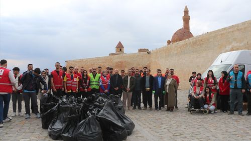Doğubayazıt Kaymakamlığı ve Türk Kızılay Doğubayazıt Şubesi, İshak Paşa Sarayı ve Ahmed-i Hani Türbesi çevresinde farkındalık temizliği gerçekleştirdi.