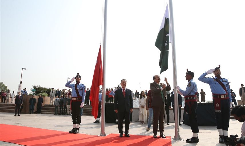 Pakistan'ın başkenti İslamabad'da düzenlenen törenle, Türkiye Cumhuriyeti'nin 29 Ekim Cumhuriyet Bayramı kutlandı. Törene Türkiye'nin İslamabad Büyükelçisi İrfan Neziroğlu (Sol), Pakistan Başbakanlık Gençlik Programı Başkanı Rana Masud Ahmed (Sağ) ve davetliler katıldı. Pakistan Anıtı alanında düzenlenen tören kapsamında Türk ve Pakistan bayrakları göndere çekildi, anıta çelenk bırakıldı.