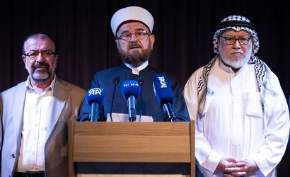 Dünya Müslüman Alimler Birliği Genel Başkanı Ali Muhyiddin el-Karadaği ise basın açıklamasının Arapça metnini okudu.