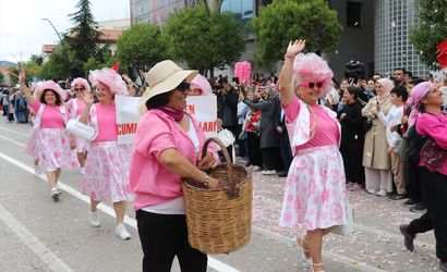 Kortej yürüyüşüne, Kuzey Kıbrıs Türk Cumhuriyeti (KKTC), Kosova ve Bulgaristan'dan halk oyunları gösteri grupları katıldı. Yürüyüş sırasında, festivale katılanların üzerine gül suyu serpildi ve gül çiçekleri atıldı.