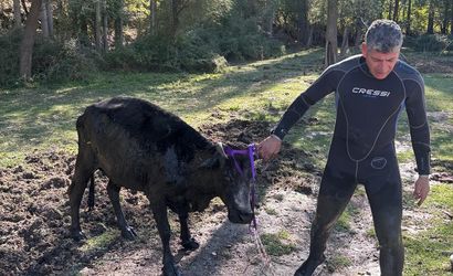 Isparta'da, şelale yakınlarında bataklığa saplanan büyükbaş hayvan, itfaiye ekipleri ile veteriner hekimin ortak çalışması sonucu kurtarıldı.