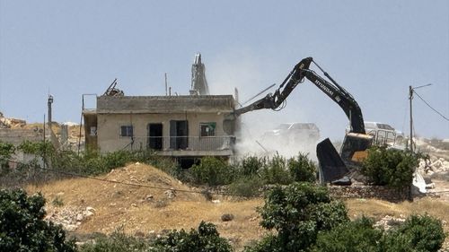 İsrail ordusu, Batı Şeria'nın güneyinde ruhsatsız olduğu gerekçesiyle bir Filistin evini ve çiftliğini yıktı.