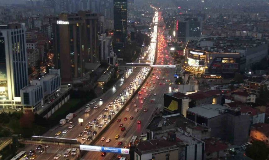 İSTANBUL’DA MESAİ ÇIKIŞ SAATLERİNDE TRAFİK YOĞUNLUĞU YÜZDE 90’A ULAŞARAK ADETA DURMA NOKTASINA GELDİ. MEGAKENTTE UZUN ARAÇ KUYRUKLARI OLUŞURKEN TRAFİK HAVADAN GÖRÜNTÜLENDİ.