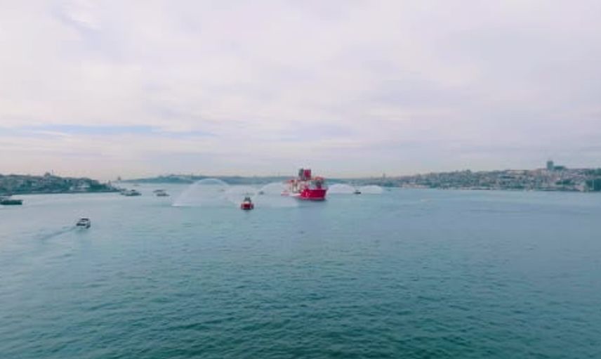 İstanbul Boğazı'na yaklaşan Türk sondaj gemisi böyle görüntülendi