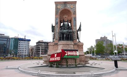 İstanbul'da, 1 Mayıs Emek ve Dayanışma Günü kapsamında bazı sendikaların temsilcileri, Taksim Cumhuriyet Anıtı'na çelenk bıraktı.