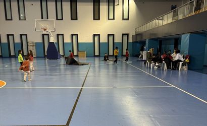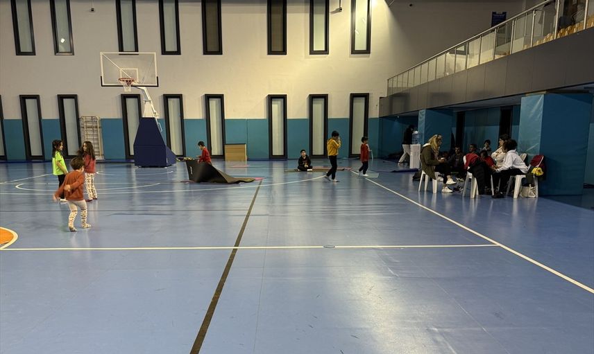 Üsküdar'daki Vakıfbank Spor Sarayı'nda kalan aileler, yanlarında getirdikleri örtülerle kendilerine yatak yaptı. Tribünlerde vakit geçiren bazı ailelerin çocukları, müsabaka sahasında oyun oynadı.