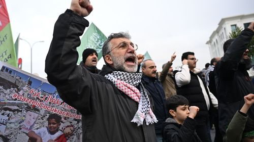 İstanbul Başakşehir'de, İsrail'in Gazze'ye düzenlediği saldırılarda hayatını kaybedenler için gıyabi cenaze namazı kılındı.