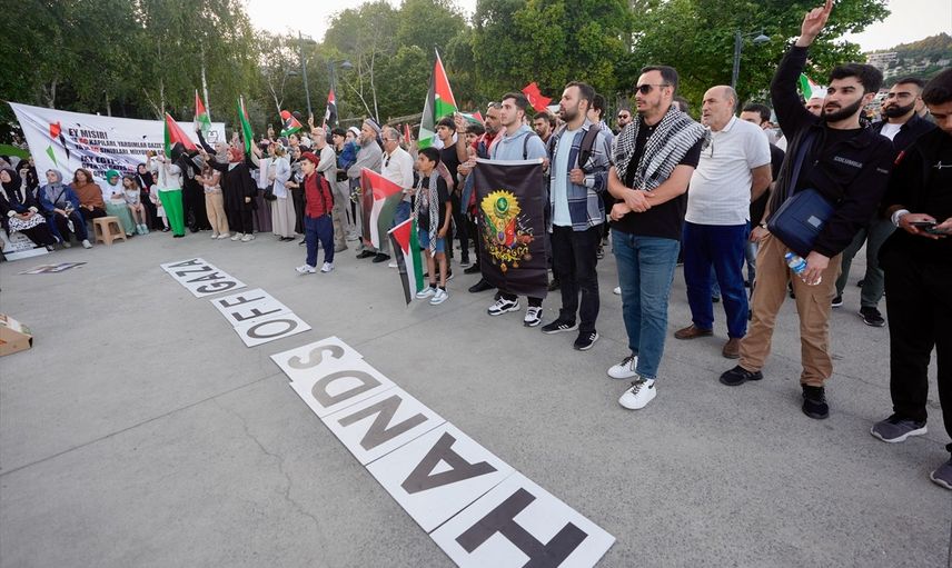 Akşam saatlerinde toplanan katılımcılar, "Her yer Gazze, her yer direniş" sloganları atarak, Gazze'ye uygulanan ablukanın sonlandırılmasını talep etti.
