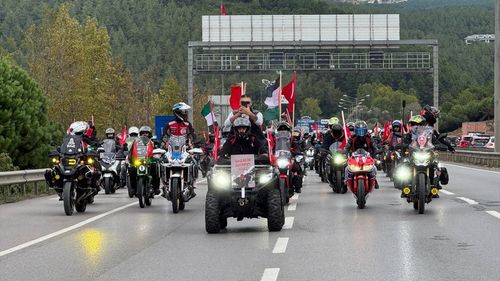 İstanbul'da motosikletliler Ümraniye'de bir araya gelerek "Gazze için farkındalık sürüşü" düzenledi, Filistin için dua edip konvoy oluşturdu.