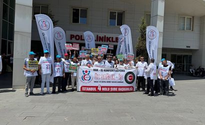 HAK-İŞ'e bağlı Öz Sağlık-İş Sendikası üyeleri, Kamu Toplu İş Sözleşmeleri Çerçeve Protokolü görüşmelerine ilişkin eylemlerini İstanbul'un Şişli ve Beylikdüzü bölgelerinde gerçekleştirdi.