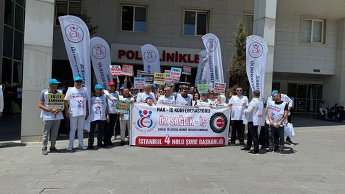 Öz Sağlık-İş Sendikası Üyeleri Eylemde Bir Araya Geldi HAK-İŞ'e bağlı Öz Sağlık-İş Sendikası üyeleri, Kamu Toplu İş Sözleşmeleri Çerçeve Protokolü görüşmelerine ilişkin eylemlerini İstanbul'un Şişli ve Beylikdüzü bölgelerinde gerçekleştirdi. Beylikdüzü'nde Görüşme Talepleri Beylikdüzü Devlet Hastanesi önünde toplanan sendika üyeleri, döviz…