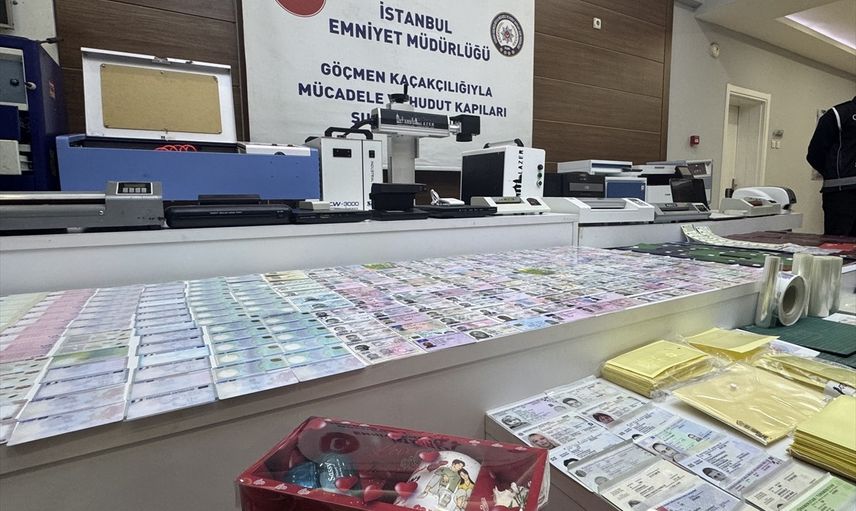İstanbul'da, sahte kimlik ve pasaport düzenledikleri iddiasıyla gözaltına alınan 9 şüpheliden 8'i tutuklandı. İstanbul Emniyet Müdürlüğü Göçmen Kaçakçılığıyla Mücadele ve Hudut Kapıları Şubesi ekipleri, "resmi belgede sahtecilik" ve "göçmen kaçakçılığı" suçlarının önlenmesine yönelik çalışma yürüttü. Belirlenen adreslere düzenlenen operasyonda 1150 pasaport, kimlik kartı, vize etiketi, sürücü belgesi, lazer kazıma ve markalama makineleri ile sahte belge üretiminde kullanılan malzemeler ele geçirildi.
