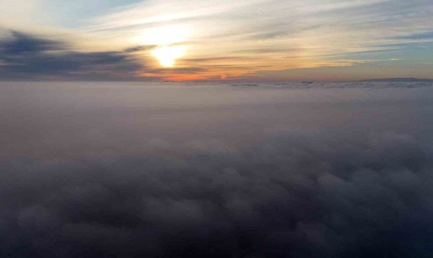 Dron, kenti kaplayan pamuk tarlasını andıran bulut denizinin üzerine çıkarak, doğan güneşin ışıklarıyla süzülen eşsiz kareleri kaydetti. Çekimler, görenleri etkileyen görsel zenginlik sundu.