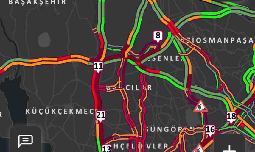 İstanbul Büyükşehir Belediyesi Trafik Yoğunluğu Haritası verilerine göre, akşam iş çıkış saatlerinde şehir genelinde trafik yoğunluğu yüzde 83 olarak ölçüldü.