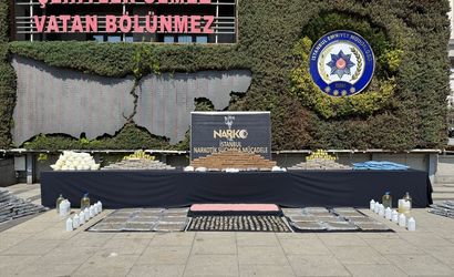 Şüphelilerin adreslerinde yapılan aramalarda, 159 kilo 800 gram skunk, 41 kilo 880 gram metamfetamin, 50 kilo 600 gram eroin, 72 kilo 480 gram kokain, 12 kilogram reçine esrar ile 133 bin 270 uyuşturucu hap ele geçirildi. İstanbul Emniyet Müdürü Selami Yıldız (sağda), operasyonlarda ele geçirilen uyuşturucuların sergilendiği Vatan Caddesi'ndeki yerleşkede, bilgi aldığı personeli tebrik etti.