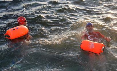 Zeytinburnu Yüzme Spor Kulübü açık su yüzücüleri, Küresel Sumud Filosu'na destek vermek amacıyla Sarayburnu'ndan hareket ederek Demokrasi ve Özgürlükler Adası'na (Yassıada) kulaç attı.