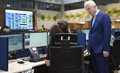 İstanbul Valisi Davut Gül (solda), Kurban Bayramı'nın üçüncü gününde Eyüpsultan'da bulunan İstanbul 112 Acil Çağrı Merkezi'ne ziyarette bulunarak görevli personelle tek tek bayramlaştı.