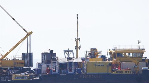 İtalya'da fırtına sonucu batan lüks yat 'Bayesian'ın enkazı, 7 kişinin hayatını kaybettiği kazadan sonra denizden çıkarılıyor.
