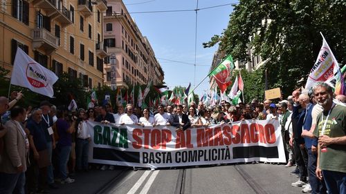İtalya'da muhalefet partileri, Gazze'deki çatışmalara dikkat çekmek için on binlerce kişinin katıldığı bir yürüyüş düzenledi.