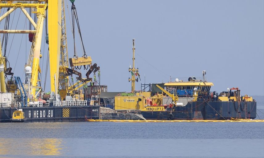 Enkazı çıkartmak için 3 Mayıs 2024 tarihi itibarıyla gerçekleştirilen çalışmalar, 'Hebo Lift 10' ve 'Hebo Lift 2' yüzer vinçlerinin yardımıyla devam etti.