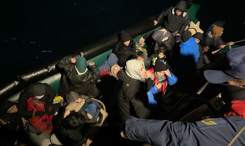 Sahil Güvenlik gemisinden devriye atan ekipler, iki lastik botta bulunan göçmenleri tespit etti. Yapılan denetimlerde, lastik bottaki 50 düzensiz göçmenden 22'sinin çocuk olduğu belirlendi.