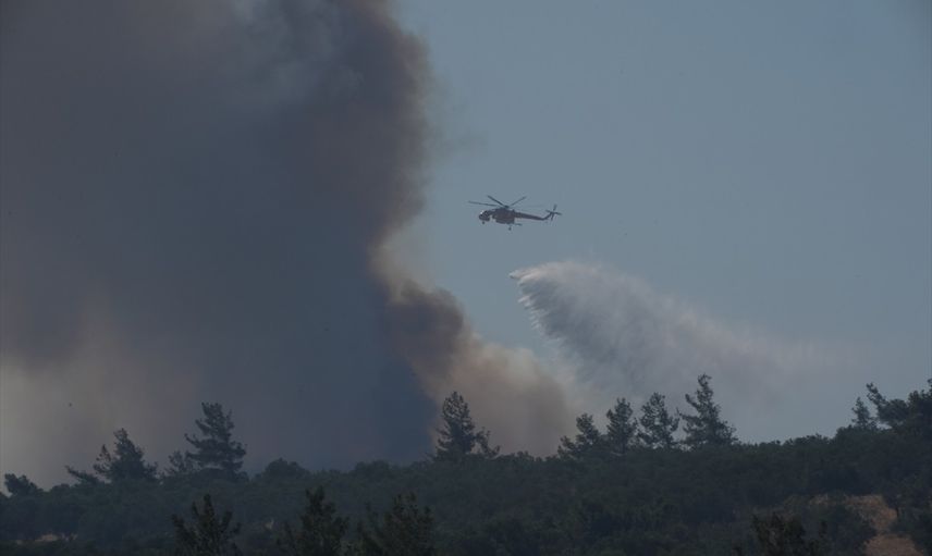 İzmir'in Aliağa ilçesinde ormanlık alanda başlayan yangına, orman bölge müdürlüğü ve itfaiye ekiplerinin havadan ve karadan müdahalesi devam ediyor.