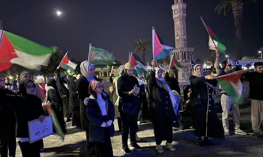 Konak Meydanı'nda toplanan kalabalık, İsrail aleyhine sloganlar attı; ellerinde Türk ve Filistin bayrakları ile pankartlar taşıyan katılımcılar tekbir getirdi. Anadolu Gençlik Derneği (AGD) İl Başkanı İlyas Duman, grup adına yaptığı açıklamada, "Bu sadece bir saldırı değil, hukukun, vicdanın ve insanlık onurunun açıkça çiğnenmesidir. İsrail'in sicili bellidir. 1948 yılından beri Filistin halkını abluka altında tutan, şehirlerini yıkan, sivilleri hedef alan, çocukları katleden bu işgal rejimi bugün bir kez daha vahşetini sergilemekte, korkaklığını ortaya koymaktadır."