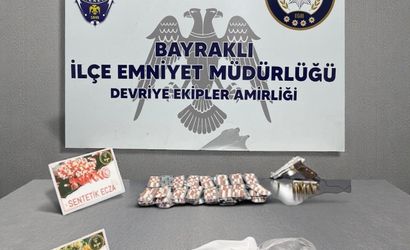 İzmir’in Bayraklı ilçesinde düzenlenen operasyonda, Bayraklı İlçe Emniyet Müdürlüğü Devriye Ekipler Amirliği ile Narkotik Suçlarla Mücadele Şube Müdürlüğü Sokak Suçları Büro Amirliği ekipleri, K.K. (32) adlı kişinin uyuşturucu ticareti yaptığı tespit edilince savcılık izniyle adrese baskın yaptı.