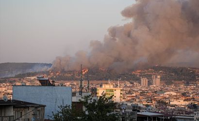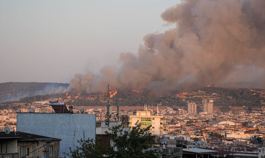 İzmir'in Buca ilçesinde bir minibüste çıkan ve ormanlık alana sıçrayan yangın, Bayraklı Sahili'nden de görüldü.