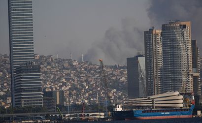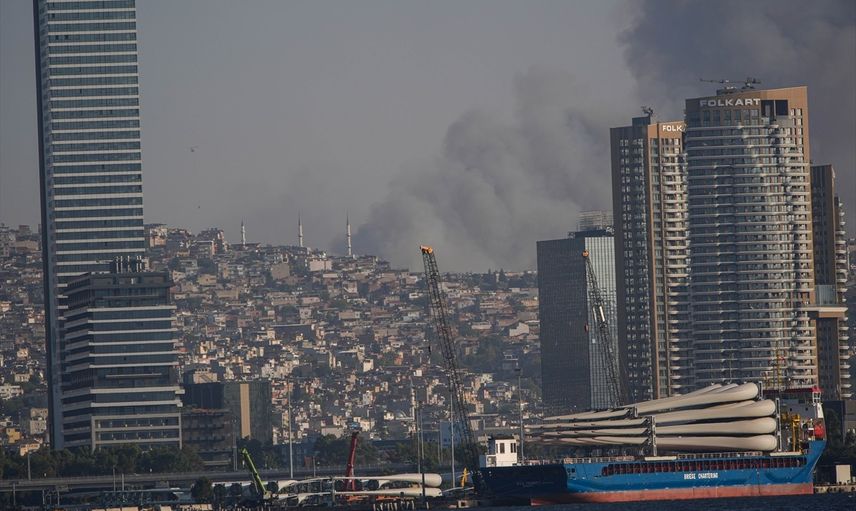 İzmir'in Buca ilçesinde bir minibüste çıkan ve ormanlık alana sıçrayan yangın, Bayraklı Sahili'nden de görüldü.