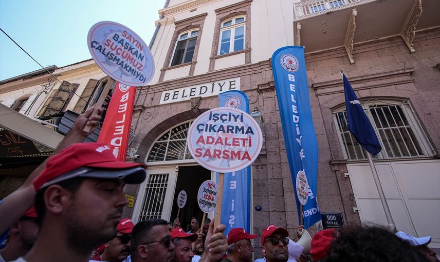 İzmir Büyükşehir Belediyesinde işten çıkarılan işçiler, Türkiye Belediyeler ve Genel Hizmetler İşçileri Sendikası (Belediye-İş) öncülüğünde yürüyüş eylemi gerçekleştirdi.