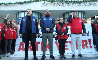 İZENERJİ, İZELMAN, İZFAŞ, EGEŞEHİR ve İZTEK'te çalışan işçiler, aylardır ödenmeyen haklar, TİS ödemelerinin yapılmaması, maaşların eksik yatırılması, işten çıkarılan işçilerin geri alınmaması ve "havuz sistemi" olarak bilinen uygulamadaki sorunlar nedeniyle Kültürpark Basmane Kapısı önünde basın açıklaması yaptı.