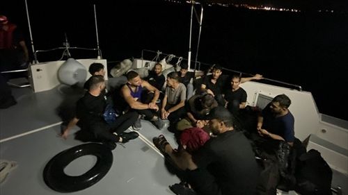 İzmir'in Çeşme açıklarında lastik botta bulunan 11 düzensiz göçmen Sahil Güvenlik ekiplerince yakalandı ve İl Göç İdaresi Müdürlüğüne sevk edildi.