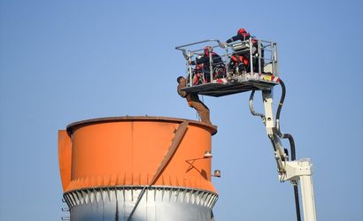 İzmir'in Bornova ilçesinde çimento fabrikasına ait 70 metre yüksekliğindeki bacaya temizlik amacıyla çıkan iki işçi, iskelenin çökmesi sonucu yaklaşık 10 metre düşerek bacanın içine mahsur kaldı.