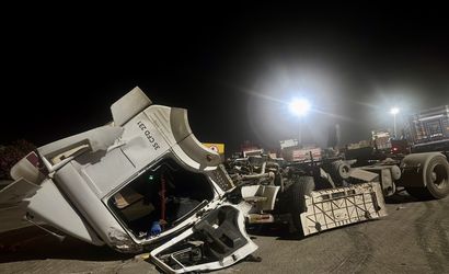 İzmir'in Aliağa ilçesinde tırın bariyere çarpması sonucu 2 kişi yaralandı.