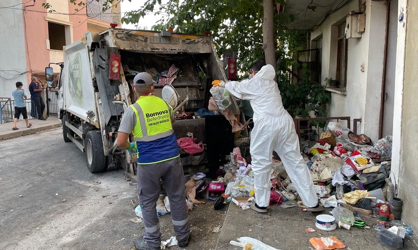 Evden yayılan kötü kokular ve artan hijyen sorunları, mahalle sakinlerini endişelendirerek durumu yetkililere bildirmek zorunda bırakmıştı. Gelen ihbar üzerine, Bornova Belediyesi Temizlik İşleri, Fen İşleri, Park ve Bahçeler Müdürlüğü ekipleri harekete geçti.