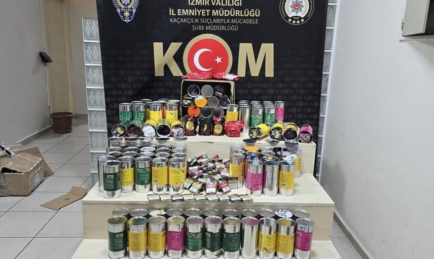 İzmir'de düzenlenen kaçakçılık operasyonlarında 1 milyon 93 bin içi doldurulmuş makaron, 3 bin 887 paket gümrük kaçağı sigara, 2 bin 939 gümrük kaçağı puro, 114 kilogram nargile tütünü, 280 litre taklit etiketli etil alkol ele geçirildi.