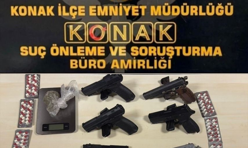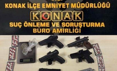 İzmir'in Konak ilçesinde kenevir yetiştirmek için evinin bir odasına sera kurduğu belirlenen zanlı tutuklandı. Yapılan aramada 6 tabanca, 100 mermi, 55 gram esrar, 2 hassas terazi, kenevir yetiştirmek için kullanılan malzemeler, 196 sentetik hap ile uyuşturucu satışından elde edildiği değerlendirilen 18 bin 600 lira ele geçirildi.