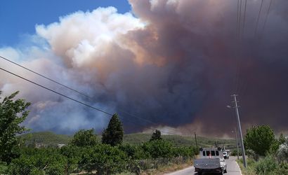 İzmir'in Menderes ve Seferihisar ilçeleri sınırlarında çıkan orman yangınına havadan ve karadan müdahale ediliyor.